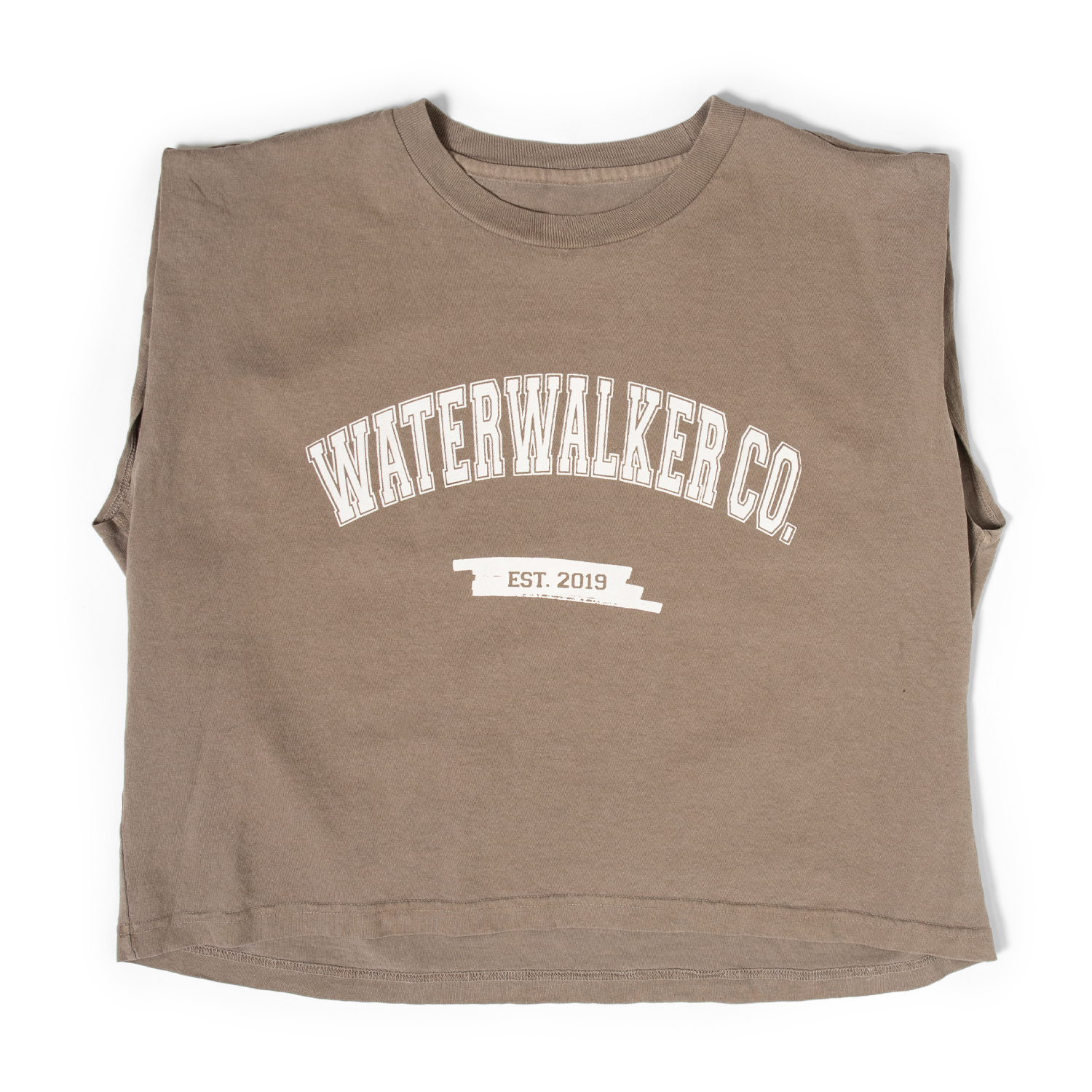 The EST. 2019 Cropped Muscle Tee is rooted in the origin of Waterwalker Co.—the decision to act in faith and trust what was being built before it could be seen.