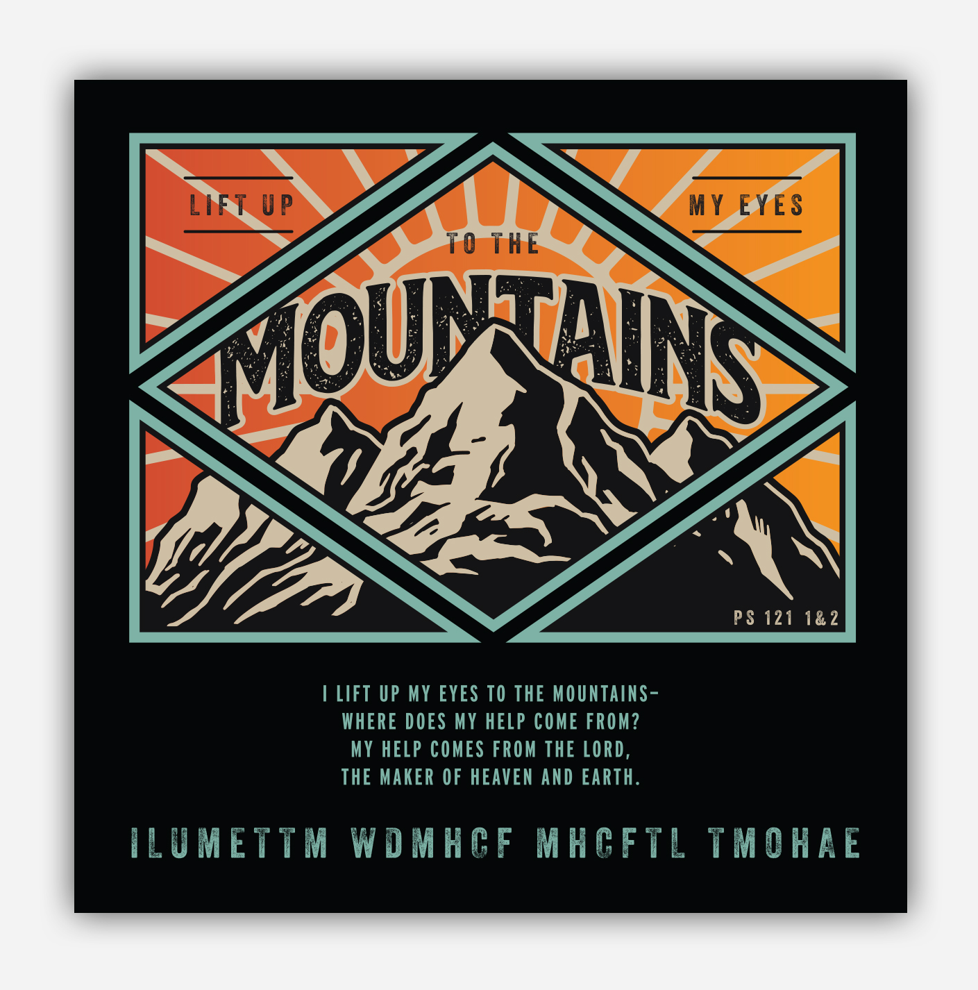 Based on Psalm 121:1–2, the design is divided into two intentional sections. The upper portion serves as a visual reminder of the passage, meant to remain even after memorization. Below it, the verses are written out in full, followed by a memorization aid that displays only the first letter of each word.