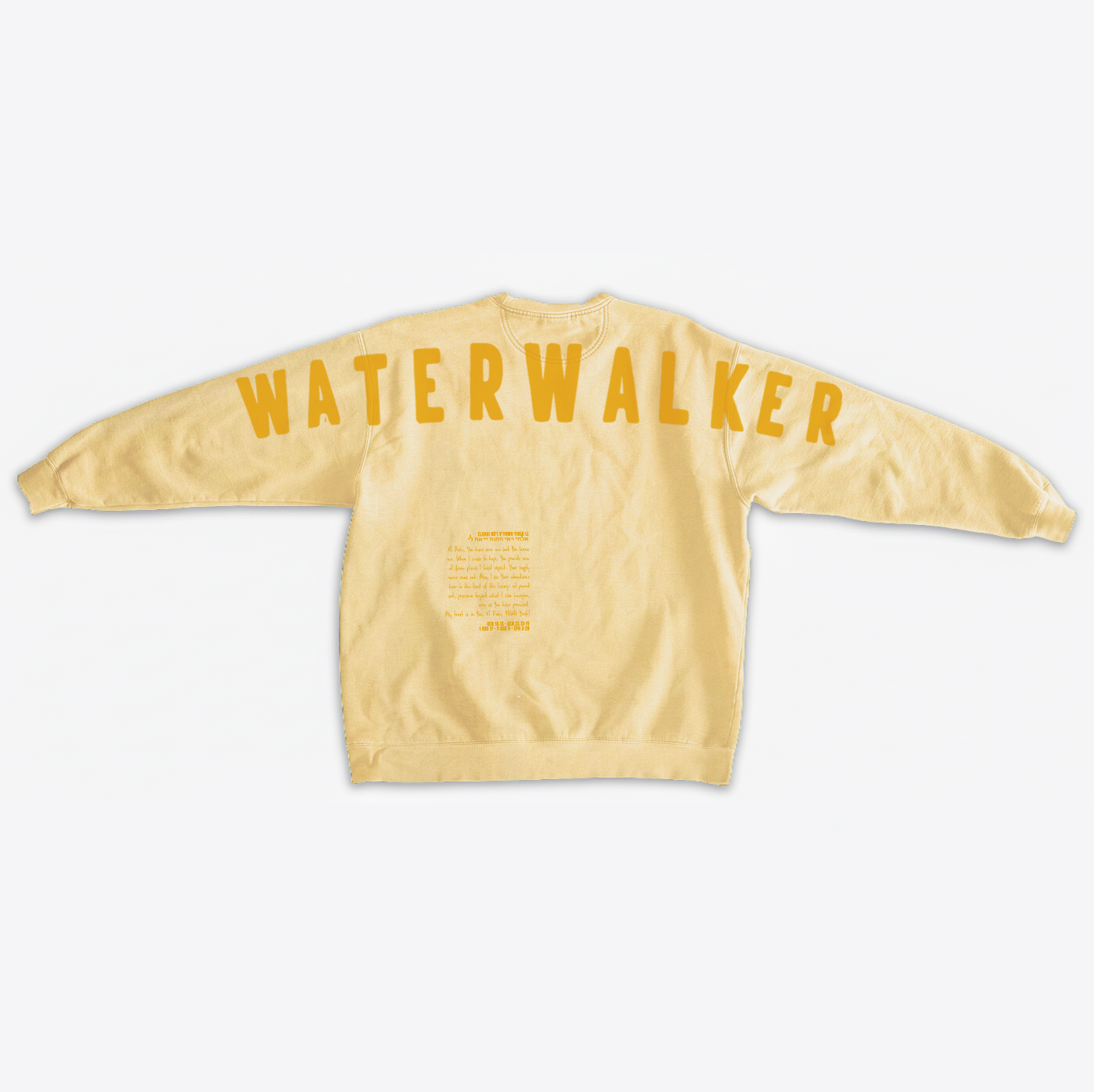 “SPEAK LIFE” across the chest, “WATERWALKER” printed boldly on the back shoulders, who God is to you placed on the front hem, and a declaration based on Scripture on the back—each element designed to reinforce truth.